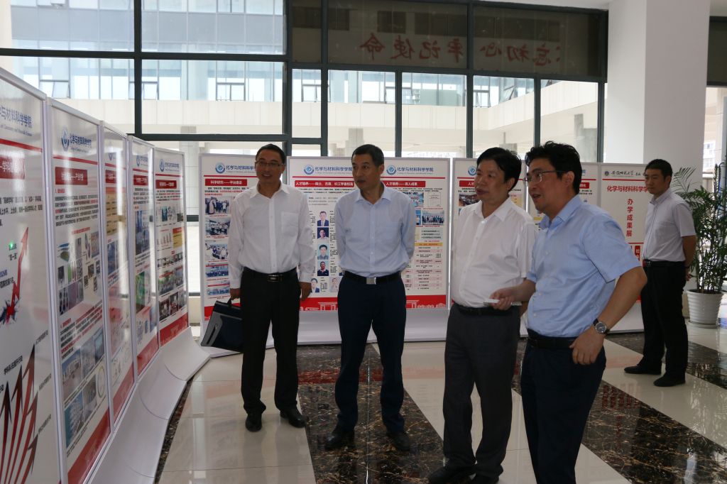 验收期间,工作组认真检查了学校党建工作示范高校、标杆院系建设成果资料,实地走访了化学与材料科学学院,查看了学院党建活动场所和办学成果展。