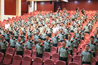 校学工部部长、学生处处长、人武部部长台启权代表学校两万多名学生向武警支队全体官兵致以亲切问候,并对他们多年来在国防教育、军事训练等工作中对我校的积极指导和大力支持表示衷心的感谢。并表示校学工系统将实实在在为部队做一些实事,解决一些难题,不断推动合作共建的进一步深化。