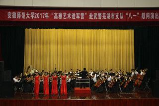 本网讯(音乐学院 张崇) 7月31日,在全国上下庆祝中国人民解放军建军90周年,喜迎十九大之际,安徽师范大学学工部,校团委,音乐学院80多名师生冒着高温酷暑前往武警芜湖市支队,用高雅艺术向人民子弟兵送去真切的节日问候。
