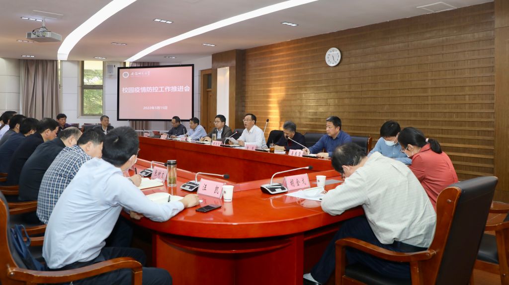 与会人员围绕疫情防控指挥体系、信息排查、物资储备、核酸检测、校内隔离点、公共场所消杀、校门管控等疫情防控工作进行了讨论交流。陆林就做好近期校园疫情防控工作提出了具体要求。