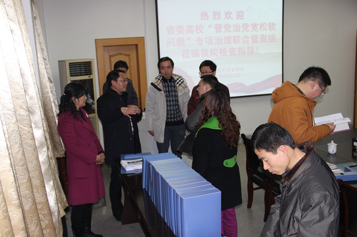 听取汇报后,联合督查组详细查阅学校“管党治党宽松软问题”专项治理工作相关材料,与学校有关领导、相关部门负责人、学院主要负责人以及教师代表进行个别谈话,并实地走访文学院,深入了解学院党委在专项治理整改工作的进展情况。