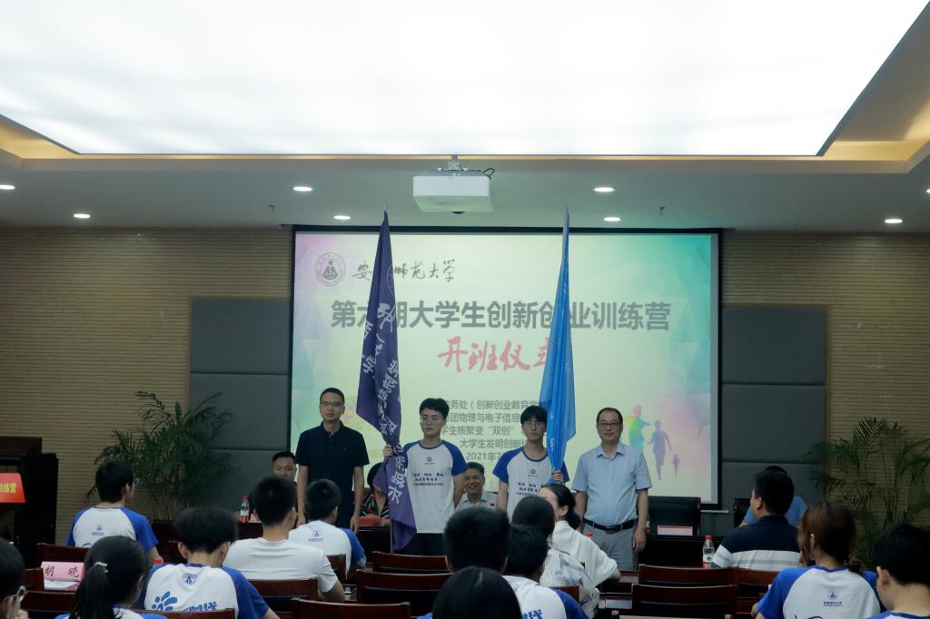 陆林在总结讲话中指出,青年是国家和民族的希望,创新是社会进步的灵魂,未来属于青年,希望寄予青年。他对全体学员提出希望:要培养创新创业兴趣,在学习和交流的过程中培养创新兴趣,促进自我能力提升。要砥砺艰苦奋斗精神,在过程中要做到理想坚定,不怕困难,勇于开拓,顽强拼搏。要展现青年学子才华,“将自己所学应用到实践中去,在大众创业、万众创新的时代洪流中奏响青年大学生的乐章。 最后,汪凯、李汪根为暑期创新创业训练营实践团队授旗。开班仪式后,李汪根为学员们上了第一讲。