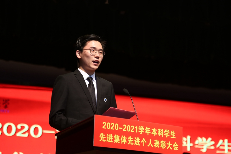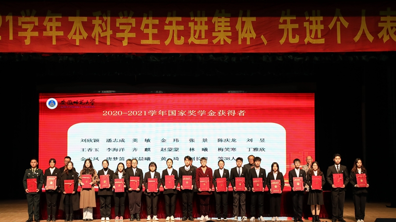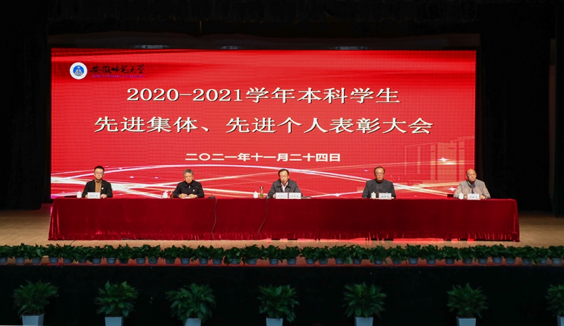 本网讯(学生工作处校团委)在全校上下深入学习贯彻习近平总书记“七一”重要讲话精神、党的十九届六中全会精神和省第十一次党代会精神之际,为隆重表彰上一学年取得优异成绩的学生先进集体和先进个人,引导激励广大学生坚定不移听党话、跟党走,奋发图强、奋勇争先,11月24日下午,学校在花津校区大礼堂隆重举行2020-2021学年本科学生先进集体、先进个人表彰大会。在校校领导胡朝荣、蒋家平、陆林、周新发、熊宇杰,学校有关部门主要负责同志,各学院党委书记、院长、党委副书记、教学副院长,专业负责人和教师代表,全体本科生辅导员,学生先进集体、先进个人代表和学生代表参加本次大会。大会由校党委书记胡朝荣主持。