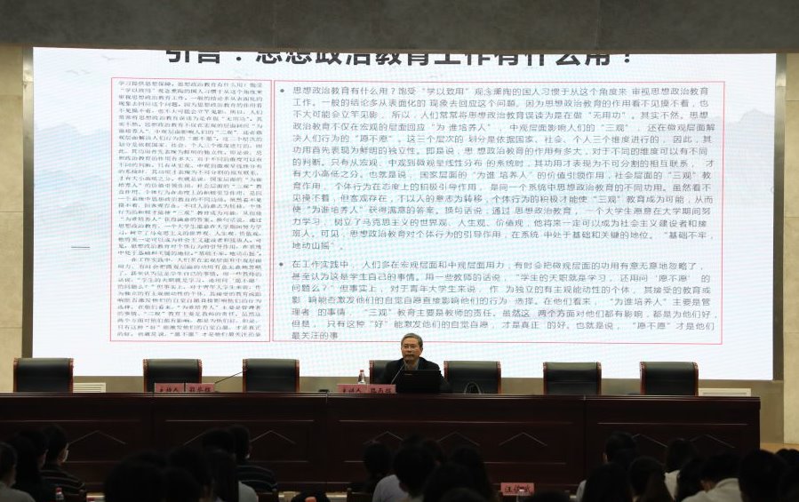 开班式后,马克思主义学院教授、博士生导师路丙辉老师为培训班学员作了题为《新时代做好学生思想工作要走群众路线》的首场专题辅导报告。路丙辉围绕学习贯彻习近平总书记重要讲话精神和自己从事辅导员工作的体会,从群众路线工作方法的哲学思考、新时代深入贯彻群众路线面临的挑战、群众路线的工作方法在辅导员工作中的运用等三个方面,系统阐述了如何群众路线理念指导下做好当前学生思想政治教育工作。他通过思想政治基本原理解析和生动鲜活的思政教育案例剖析,系统谈了关于辅导员创造性做好学生思想政治教育工作的深入思考,给培训班学员带来诸多具体指导和深刻启示。