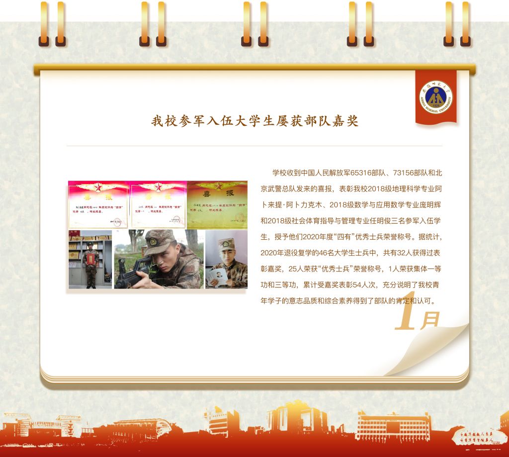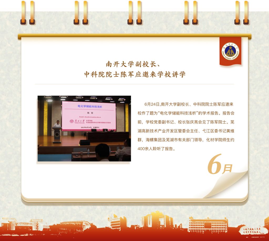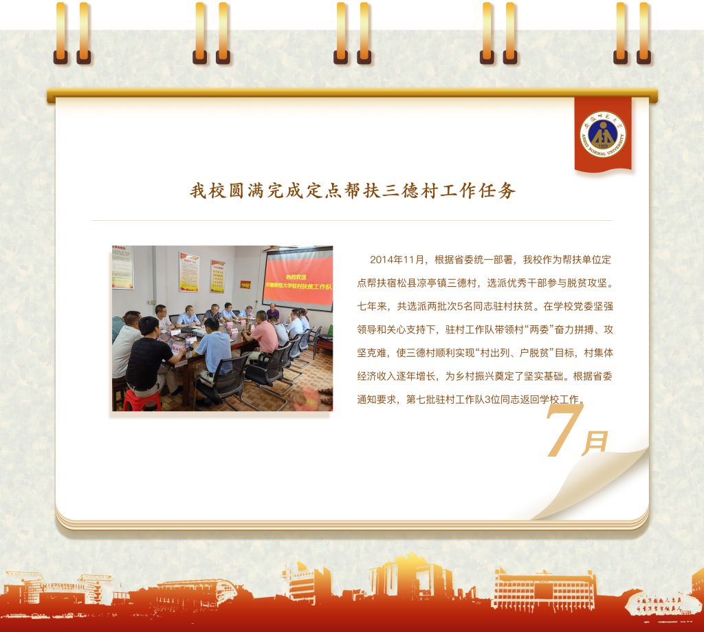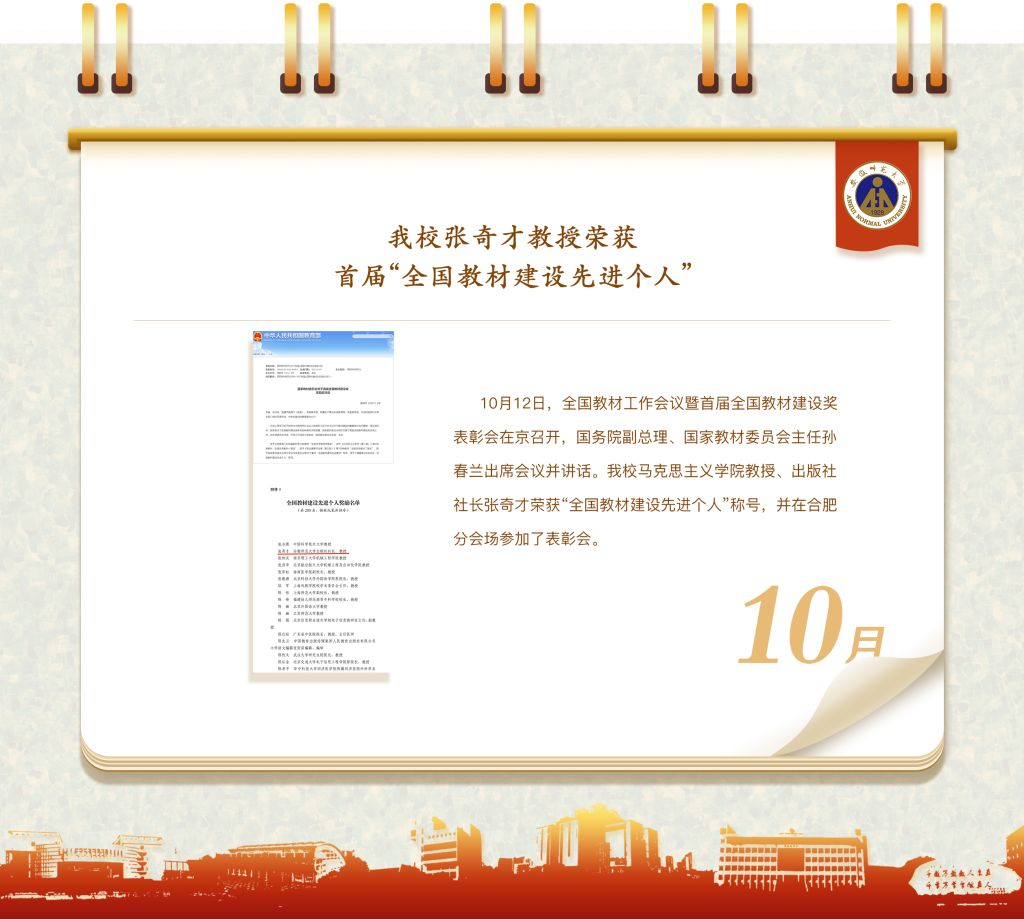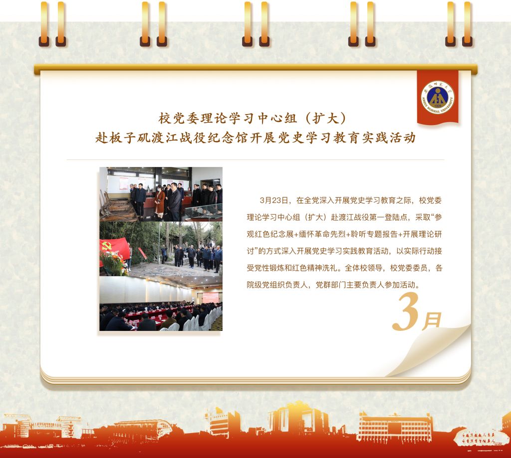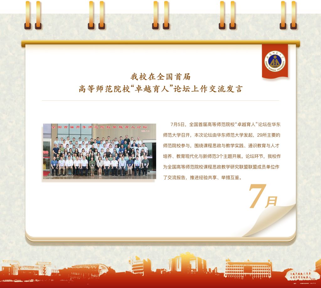 编者按 2021年是中国共产党成立100周年,是全面建设社会主义现代化国家新征程开启之年,也是“十四五”开局之年。这一年,党的十九届六中全会胜利召开,省第十一次党代会擘画安徽未来五年发展蓝图,校第九届教代会暨第七届工代会审议通过学校“十四五”事业发展规划……2021年,全体师大人凝心聚力、锐意进取,埋头苦干、勇毅前行,深入开展党史学习教育和“我为师生办实事”实践活动,加快推进高水平大学建设,在教学、科研、文化、服务等方面取得了丰硕成果。这一年,学校23个专业入选国家级、省级一流本科专业建设点,新增3个一级学科博士学位授权点、1个一级学科硕士学位授权点和6个硕士专业学位授权类别,我校学生工作被《人民日报》报道,路丙辉教授获评“全国优秀共产党员”并赴京参加庆祝中国共产党成立100周年有关活动,阮成武教授荣获“全国五一劳动奖章”,王春雨在东京奥运会上创造中国田径女子800米最好成绩,文科综合楼、教师教育实习实训中心等一大批新建筑顺利开工建设……一行行脚踏实地的足迹,印证了师大人干事创业的坚强定力;一次次永不止步的探索,书写了师大人追求卓越的强烈信念;一幅幅撸起袖子加油干的画面,诠释了师大人教书育人的初心和使命。