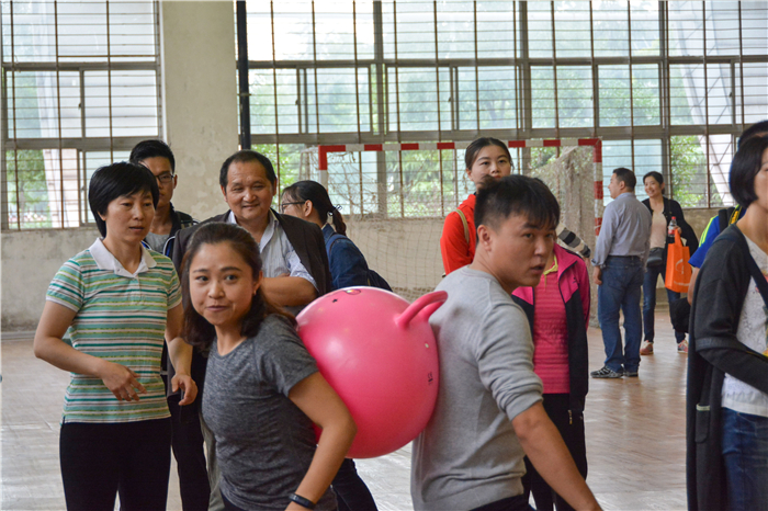 在北体育馆举行的趣味运动会中,我们注意到有这样一群老师。他们年龄与学生相差无几,跃跃欲试的表情、轻松欢愉的谈笑之间难掩对于比赛的期待。“众所周知,作为一名辅导员的工作是很繁琐的,久而久之一些职业病也就随之而来,我们渐渐意识到健康对于我们的重要性”,16级行政管理专业辅导员桂彬表示,“所以平时下班后自己也会挤出一些琐碎的时间去运动锻炼,将有氧运动与无氧运动结合起来,渐渐的身体机能也开始好转。”当问及桂老师此次运动会为什么会参加投标这个项目时,他说道:“这个项目可能更多地是让参赛者感受到比赛的乐趣和体育的魅力。运动并不意味着一定是要去田径场上一决高下,相反我认为这种趣味性的项目更能激发我们的兴趣。”放下鼠标、走出办公室的辅导员们一改往日的严肃神情,随着场馆内的志愿者一起欢呼加油,无形之中拉近了同事之间、师生之间的距离。而在“心心相印”比赛结束后,来自生命科学学院的15级辅导员王志也说出了自己的感触:“这次比赛的胜利是和我们彼此搭档的默契分不开的,这种比赛不但放松了我们的身心,更重要的是,对我们同事间日后工作的合作也有很好的推动作用。”