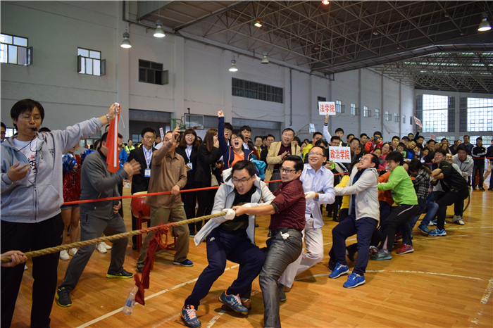 “加油,加油!”顺着加油声望去,文学院与外国语学院正在展开激烈的拔河比赛。文学院的老师本该是一身诗意满腔文采的样子,但比赛中文学院老师们整齐划一的口号,同心协力的节奏,使得他们毫无悬念的取得了这场比赛的胜利。谈及这场比赛,夏家顺老师作为参赛选手之一显得尤为激动,“我平时就是很喜欢运动,周末打打篮球啊、乒乓球啊、跑步什么的,感觉每一次的运动对于我来说都是一种享受。而为了这次比赛,我在家里已经进行了数个月的臂力拉伸”。据悉,夏家顺老师在44届校运会就已经参与其中,他认为运动会本身就是一项有意义的活动,只有参与其中才能真切的感受到竞技体育的乐趣。