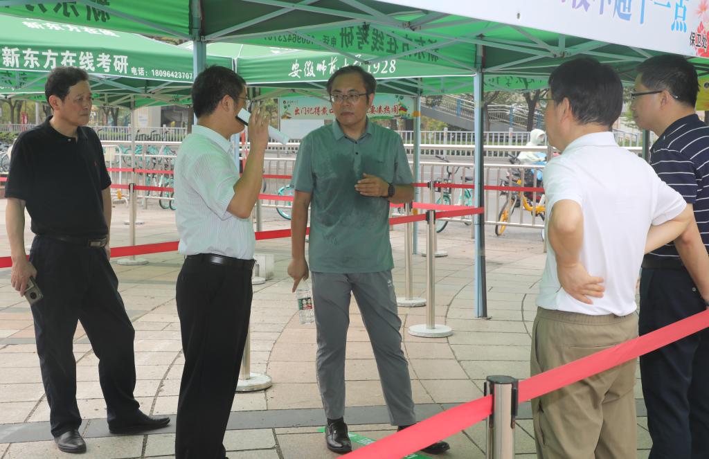 本网讯(党委宣传部 王哲谦)9月1日上午,学校新学期第一天,校党委副书记蒋家平带领学校办公室、宣传部、学生工作处、研究生院、保卫处、总务处、信息管理中心、防控办负责同志深入两校区及三附校园,实地检查督导校园疫情防控及开学准备工作。