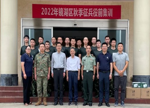 为进一步弘扬崇军拥军优良传统,9月14日上午,校党委常委、副校长陆林,带领人武部和学院党委副书记代表等一行赴芜湖市国防动员培训学校,慰问欢送2022年秋季从学校报名入伍的全体毕业生。镜湖区人武部部长任恒、副部长徐桂松接待我校一行,并举行座谈会。座谈会由校党委人武部部长邵登辉主持。