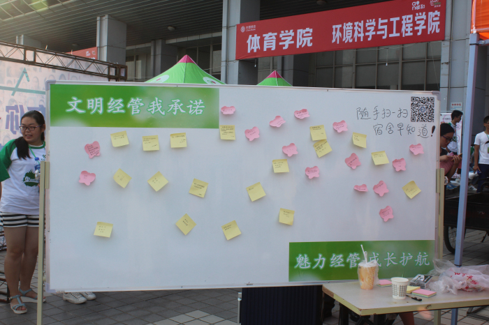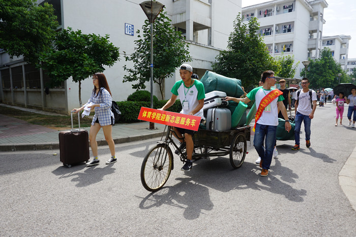 走在师大的校园里,来报到的新生最引人瞩目,他们身后有默默付出的广大志愿者们。文学院的师大理想号开启师大理想之旅;新闻与传播学院的空乘学姐、学长带你飞入新传的怀抱;数学计算机科学学院用签名墙记录开学的第一笔;环境科学与工程学院用单反留住入学最懵懂的你;生命科学学院的志愿者们自制酸奶与自酿啤酒,用热情为新生及家长消除天气的燥热;音乐学院的志愿者们则精心为新生准备迎新卡片,上面不仅有各方面管理人员的电话,还有新生防诈骗提醒。志愿者们的细心准备让新生在入校之际感受着师大的温情与暖心。而物理与电子信息学院的志愿者们则耐心地为新生及家长详细的介绍专业特色,并为早到的家长提供早餐服务……志愿者们虽在不同的校区却怀揣着同一份热情及责任,用行动彰显着师大的魅力和温暖,也坚持着志愿服务的初心。当被问及志愿服务的感受时,15级广告学专业的王茜说道:“初为学姐,觉得有些不真实,时间飞逝,依旧是去年的场景,却是不同的任务,看到新生们对大学生活满怀期待的的面庞,能够带他们走大学的第一小步,即便是志愿活动有些辛苦也觉得十分值得。同时,也希望学弟、学妹们能好好的利用大学的四年,实现自己最初的梦想。”