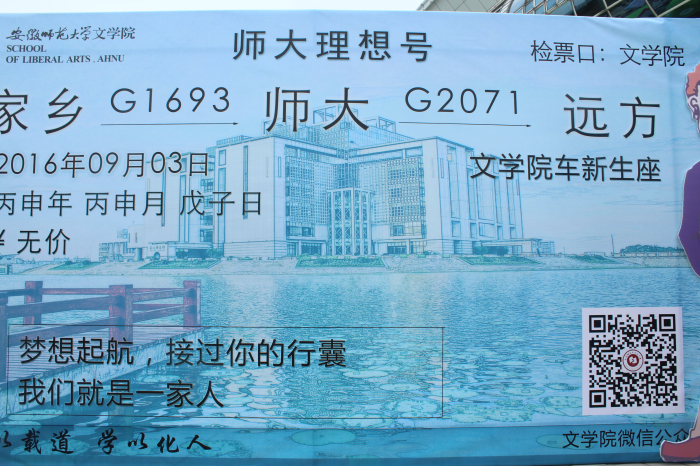清晨,迎新帐篷、“热烈欢迎2016级新生”的标语、鲜艳的彩色气球拼图都彰显了学校迎接新生的热情和温暖。鲜红的迎新横幅、迎风飘扬的彩旗、色彩醒目的服务专区和指示牌,把师大装扮得格外喜庆耀眼。