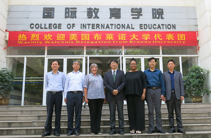 本网讯(国际教育学院 李一鸣) 5月9日-11日,美国布莱诺大学师生团来我校交流、访问。访问团成员有副校长罗伊斯·劳伦·法尔女士、副教务长克里斯托·图姆斯女士、国际学生及国际项目主管乔丹·玛丽·安德森女士及11名大学生。