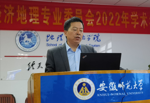 闭幕式最后由安徽师范大学地理与旅游学院副院长曹卫东教授作总结报告,回顾会前筹备、会中的精彩环节,还代表承办方感谢中国地理学会经济地理专业委员会的信任,感谢各位参会专家及广大地理学者的支持与厚爱,并期盼疫情过后专家学者们常来安徽师范大学讲学指导。