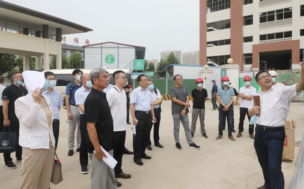 在合肥高等研究院规划区域,冒着炎热天气,带着对学校未来发展的思考,胡朝荣一行实地调研查看了在建的图书馆、学术交流中心艺术楼、多媒体综合楼等地,详细了解了目前在使用的培训楼、教师公寓、教学楼、学生宿舍、学生食堂、育才印刷厂等建筑,并现场听取了相关负责同志的工作汇报。