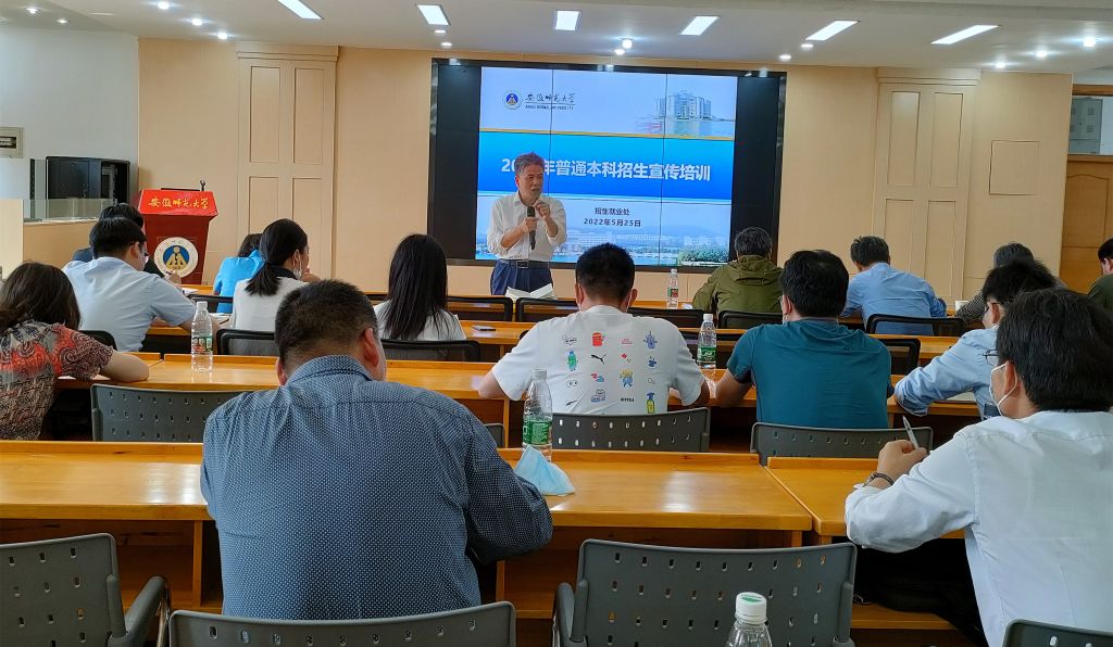 5月25日下午,学校召开2022年普通本科招生政策解读暨招生宣传工作业务培训会,校党委常委、副校长陆林出席会议并作培训动员,校、院两级招生热线接听人员、线下招宣小分队成员等170余人参加培训。