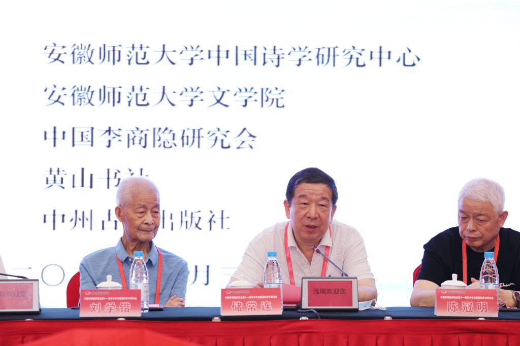 大会开幕式由安徽师范大学中国诗学研究中心主任胡传志主持。王蒙在视频致辞中对大会的举办表示祝贺,称赞刘学锴先生的道德、文章、品性、学识都令人尊敬,对李商隐的历史、著作、版本、评价、疏解方面都做出了杰出贡献。储常连在致辞中代表安徽省教育厅对会议的顺利召开表示祝贺,指出安徽师范大学中国诗学研究中心是李商隐研究的重镇,尤其是刘学锴先生推出的一系列成果在学界引起了重大反响,改写了中国文学史;强调要拉高标杆、奋力作为,加强建设、提升水平,以诗化人、以诗兴业,为安徽省文化事业和文化产业发展作出更大贡献。胡朝荣在致辞中向与会专家表示热烈欢迎,向刘学锴先生为学校学科建设和中国诗学研究中心创建、发展作出的突出贡献致以崇高敬意和衷心感谢,介绍了安徽师范大学办学情况和中国诗学研究中心发展情况。