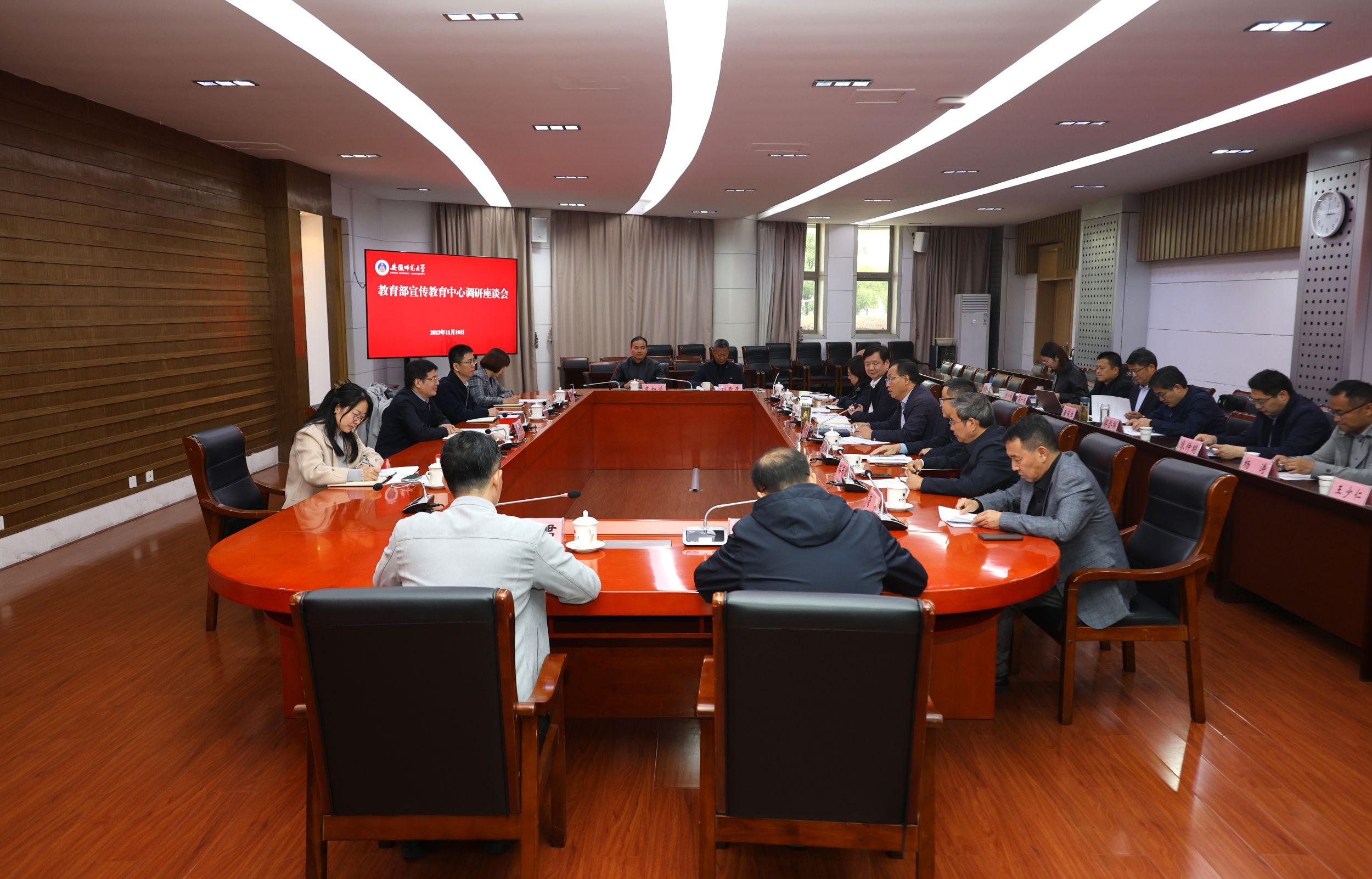 11月10日下午,教育部宣传教育中心主任黄兴胜一行来校调研宣传教育工作并召开座谈会。座谈会在花津校区会议中心第一会议厅举行。校党委书记胡朝荣主持会议。