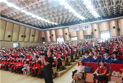 本网讯(研究生院 于珊珊/文 吴佑平/图)6月21日下午,我校2017届硕士研究生毕业典礼暨授位仪式在花津校区大礼堂举行。校学位评定委员会主席、校长王伦,校学位评定委员会副主席、副校长王绍武、朱家存,校学位评定委员会委员,研究生导师代表,有关部门、培养单位党政领导,各学院研究生秘书、毕业班辅导员以及2017届全体毕业研究生、毕业生家属等近千人出席典礼。