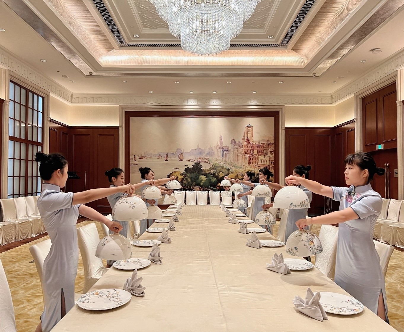 在第四届进博会筹备期间,王欣、严妍、谢继依、黄瀚文四位同学从众多选拔者中脱颖而出,进入洲际酒店进博会VIP服务团队。上海酒店协会的资深老师为此团队进行六期专业培训,站、走、让、蹲、捡、笑,每一个动作都经过几百次训练,每一个细微的动作和言语都不忽视。为加强体力以便更好服务进博会,同学们坚持一周四次5公里长跑锻炼,在工作之余每周培训20小时以上。但同学们始终热情高涨、毫无怨言,他们深知服务好进博会对国家、对世界的重要意义,尽心尽力的为进博会服务贡献力量。