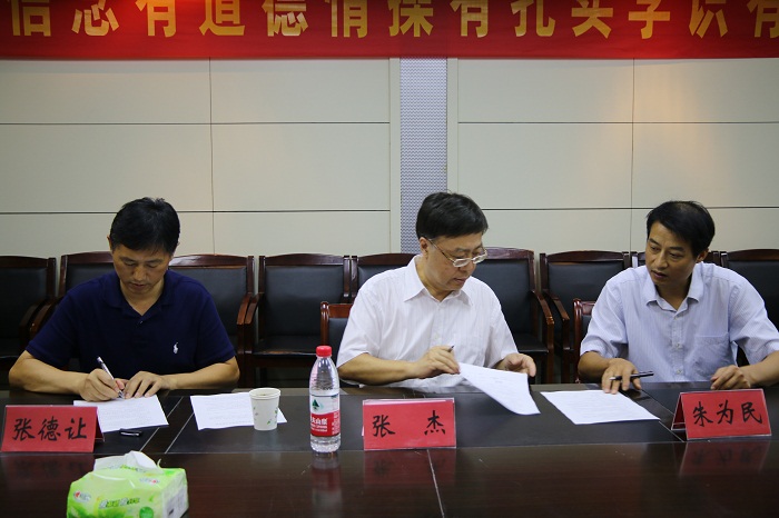 张德让、朱为民分别和张杰教授签署了聘任合同。王绍武为张杰教授颁发了聘书。