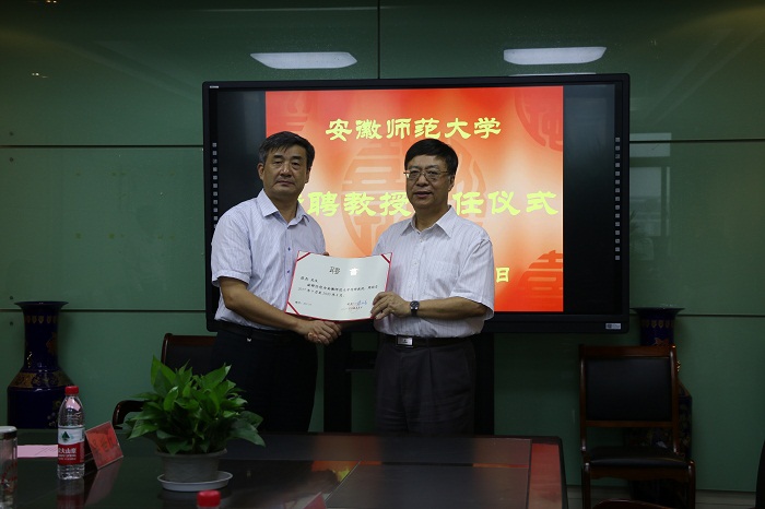 张杰教授表示,受聘特聘教授职位既是荣誉也是责任。他在聘期内,将会竭尽全力,促进外国语学院的学科建设,带动学院教学科研团队发展,在提高教师学术水平、促进国内外学术交流等方面做出贡献。他介绍了南京师范大学外国语学院发展的经验和取得的成就,愿意在各方面对安徽师范大学外院提供对口支援和帮助。他同时也希望学校政策上能够对外院加大扶持,他会和安徽师范大学同仁一起合力将外院建设好。