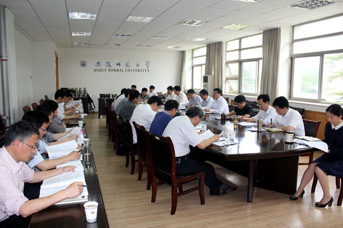 会上, 学校办公室主任曾黎明传达学习了习近平总书记在哲学社会科学工作座谈会的讲话精神、省委《关于贯彻落实习近平总书记视察安徽重要讲话意见》和省委《关于深入推进全面从严治党的若干意见》。组织部长季爱新通报了“两学一做”学习教育进展情况和存在的问题,布置下一阶段重点工作;并传达学习了《安徽省事业单位领导人员管理办法(试行)》和中组部《关于改进和完善高校、科研院所领导人员兼职管理有关问题的问答》。宣传部部长李裕鑫通报了学校庆祝建党95周年有关工作安排。