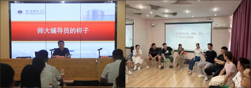培训期间,学工部部长邵登辉为新任辅导员作题为《师大辅导员的样子》专题报告,传达学校主要领导对学生思政教育和辅导员工作的要求,希望大家价值上要有爱、作风上要实干、本领上要过硬、境界上要修为、状态上要进取,砥砺育人初心,履行职责使命。培训期间,招就处处长聂全高、保卫处处长唐俊生、总务处处长黄强、校团委书记汪凯、教务处副处长李汪根、网信办副主任吴长义等领导老师为新任辅导员作专题业务培训,围绕新生工作重难点事项进行了交流指导。此次新任辅导员培训还首次将军事训练与业务培训相结合,邀请部队教官组织新任辅导员冒酷暑开展队列等训练,学校心理健康教育中心为新任举办团体心理辅导活动,锻炼强化规矩意识、吃苦精神和团队意识。