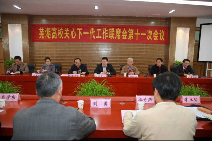 ,由我校关工委承办的芜湖高校关心下一代工作联席会第十一次会议在花津校区举行,全市11所高校关工委参加了本次会议。省教育厅关工委常务副主任郝运福,芜湖市关工委主任魏道斌,我校党委书记顾家山、校关工委常务副主任李立功,部分高校的分管领导参加了会议。我校纪委书记程度主持会议。