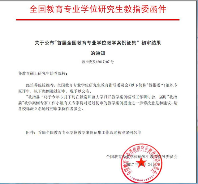 根据相关文件规定,专业学位案例入选“中国专业学位教学案例中心案例库”是教育博士学位点申报的条件之一,也是教育硕士专业学位合格评估的重要指标。为此,学校将定期开展教育硕士优秀教育案例征集、评选和推荐入库等工作。