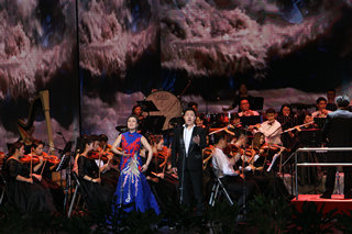 音乐会在气势恢宏的管弦乐合奏《红旗颂》中拉开序幕。夜半三更盼天明,寒冬腊月盼春风,人民期盼红军来,岭上开遍映山红。女声小合唱《映山红》优美的旋律,深情的歌词表达了人们对红军的热爱,对英雄的崇敬;烈火炼真金,危难见真情,男女二重唱《为了谁》深情讴歌了人民子弟兵英勇顽强、奋不顾身的崇高品质;管弦乐合奏《斯拉夫送别曲》旋律优美,情感真挚,描绘了战士出征,妻女“送郎上战场”的不舍情景,表现了战士们为了保家卫国,舍小家为大家的崇高品质;女声独唱《我爱你中国》脍炙人口、久唱不衰,词曲浑然一体,引起在场观众的阵阵共鸣,不少观众在台下边听边随着节奏轻声附和,现场氛围十分热烈;男声三重唱《延安颂》旋律激昂,气势磅礴,表达了千万革命人民向往延安,热爱延安的强烈愿望和真挚情感;管弦乐合奏《第一交响序曲》节奏欢快,旋律优美,以管弦乐手段营造出厚重的人性化情感氛围,深受在场观众的好评;男声独唱《浪淘沙·北戴河》气势磅礴,生动描绘了北戴河海滨夏秋的壮丽景色,表现了无产阶级革命家前无古人的雄伟气魄和汪洋浩瀚的博大胸怀;男声合唱《当兵的人》旋律激昂,情感饱满,唱出了新时期士兵的豪迈心声,张扬着人民子弟兵的阳刚之气;管弦乐合奏《人民万岁》整曲铿锵有力,通过转调和变奏,形成气势激昂和细腻婉柔交相辉映之态;管弦乐合奏《中国人民解放军进行曲》气势磅礴,振奋人心,赢得在场观众的阵阵掌声。