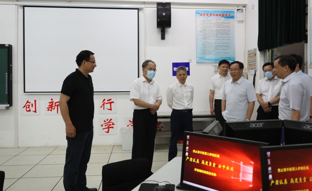 6月4日上午,省委教育工委副书记、省教育厅厅长赵振华,省教育招生考试院院长沈滔,省教育厅办公室主任卢鹏等一行,来校检查指导高考网评和体育统考准备工作。校党委书记胡朝荣,校党委常委、副校长陆林,学校有关部门、学院负责人陪同检查。