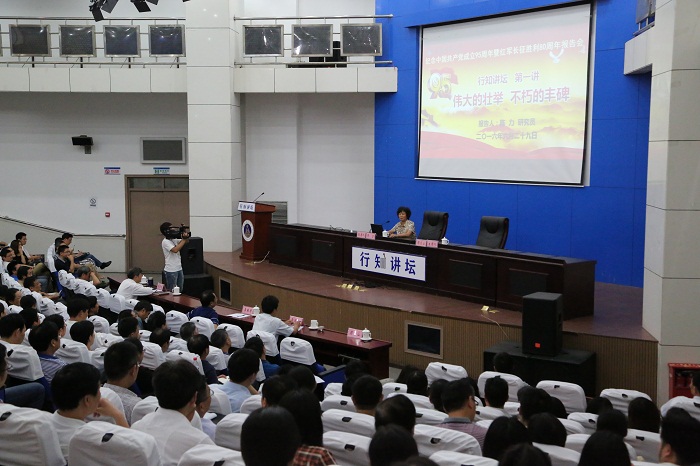 本网讯(党委宣传部 袁黎平/文 邾强/图) “长征是一次史诗般的远征,是一次红色的西部大开发,是一条永远铭刻在地球上的红飘带。”6月29日下午,敬文报告厅座无虚席,掌声阵阵,主讲人充满激情的报告把大家带回了那个战火纷飞、波澜壮阔的峥嵘岁月。为庆祝中国共产党成立95周年和红军长征胜利80周年,学校“行知讲坛”邀请我校74届校友、军事科学院军事历史研究所正师职研究员陈力大校来校作了题为“伟大的壮举,不朽的丰碑”的报告。校党委书记顾家山主持报告会。校领导、全校处级党员领导干部、全校各基层党支部书记、机关正科级实职干部参加会议。