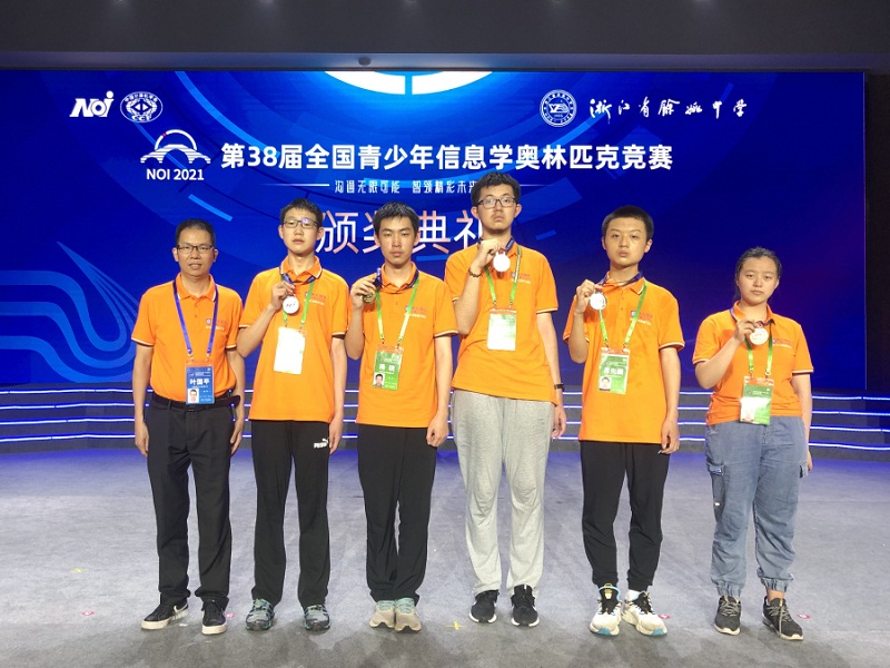 本网讯(附中 文/李居旖 图/叶国平)7月30日,第38届全国青少年信息学奥林匹克竞赛(简称NOI 2021,即全国总决赛)在浙江省余姚中学落下帷幕。安徽师范大学附属中学(下称附中)共5位同学参赛,取得了1枚金牌、3枚银牌、1枚铜牌的优异成绩,1人入选国家集训队、3人进入全国前100名(安徽省仅有3人),人数位居全国前列。