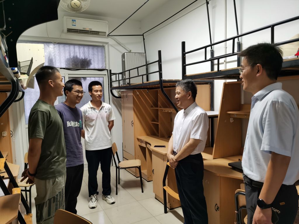 6月22日晚,在2022届本科毕业生即将离校之际,校党委常委、副校长陆林在学生处负责同志的陪同下,深入毕业生宿舍走访慰问,代表学校为即将踏上人生新征程的毕业生送去离别前的关怀与祝福。