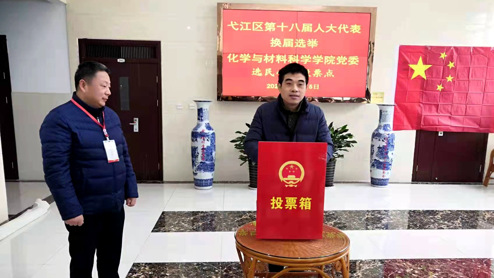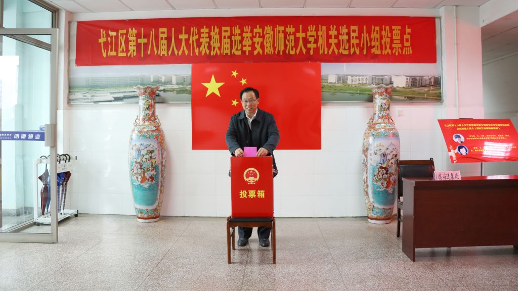 根据芜湖市、区人大代表换届选举工作统一安排,12月15日、20日分别为弋江区、镜湖区第十八届人大代表换届选举投票日。投票日当天,各选民小组设置投票站,配备投票箱、悬挂国旗、横幅,投票现场庄严而隆重。校党委书记胡朝荣、副书记蒋家平等校领导以普通选民身份在机关党委选民小组投票站参加投票。35356名登记的师生选民在所属选民小组郑重地投下自己神圣的一票,学校参选率达93.80%。