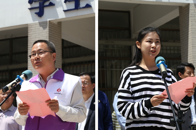 仪式上,学生工作处处长台启权代表事务中心筹建工作组,从建设方案、工程建设、文化建设、办公条件、入驻项目、运行机制等方面汇报了中心筹建情况,校学生会主席蔡志鹏和学生工作助理总队长汪沁作为学生代表共同为事务中心揭牌,后勤管理处物业监管中心主任桂晓骏、2015级播音与主持专业杨伊雪分别作为工作人员和学生代表发言。