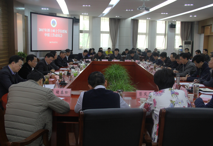 本网讯(研究生院 严俊/文 刘飞/图)4月7日下午,学校召开全国博士、硕士学位授权点申报工作动员会,研究部署2017年全国博士、硕士学位授权审核工作。校党委书记顾家山主持会议,校领导王伦、李琳琦、朱家存,研究生院、各学院负责同志,学院教授委员会主任和副主任、一级学位点负责人、未设一级学位点的二级学位点负责人等参加会议。