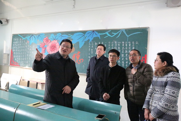 本网讯(教务处 宣传部)江城春色起,校园书声早。2月13日,学校新学期开学上课第一天。马克思主义学院的刘宏老师要开讲《马克思主义基本原理概论》课程。他提前十分钟来到教室,推门一看,2016级舞蹈表演的学生基本都已到教室。“学生这么早就到教室,新学期学生的学习积极性真是没想到。”但接下来令刘老师更没想到的是,离上课还有五分钟,教室里走进了三位特殊的“旁听生”,原来是学校领导和有关部门负责同志和学生们一起准备听开学第一课。