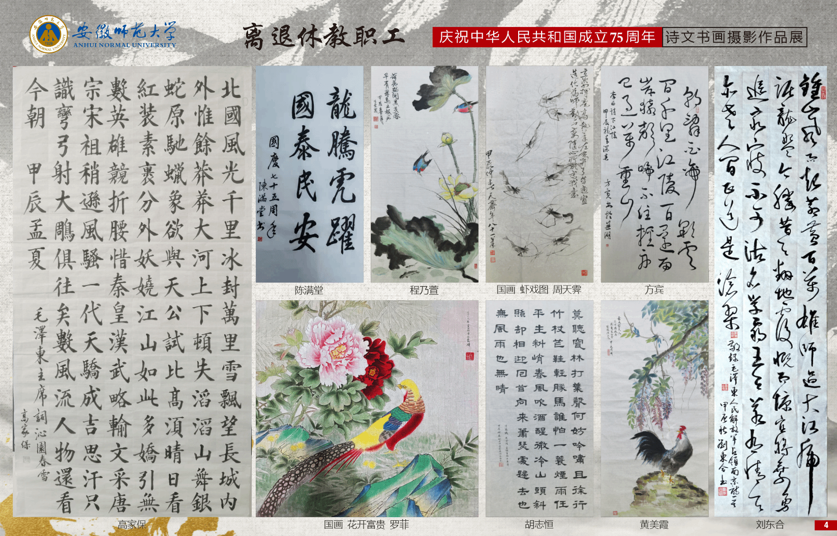 为庆祝中华人民共和国成立75周年,表达对祖国的无限热爱和崇高敬意,校离退休工作处近日举办诗文书画摄影作品展——《与时代同行》。