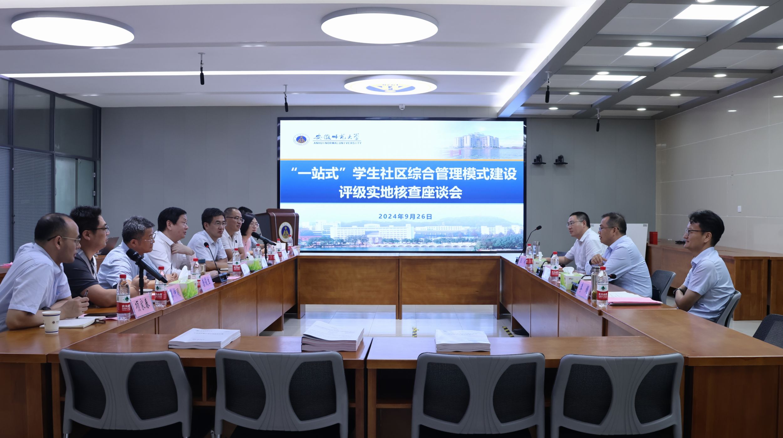 9月26日下午,省教育厅“一站式”学生社区综合管理模式建设评级实地核查专家组巢湖学院党委委员、副院长周祥,安徽财经大学党委常委、宣传部部长李超,桐城师范高等专科学校组织人事处处长、学生处处长王斌一行来校指导工作,并召开专题座谈会。校党委副书记胡靖出席并主持座谈会,相关部门和学院负责同志等参加座谈与现场走访。