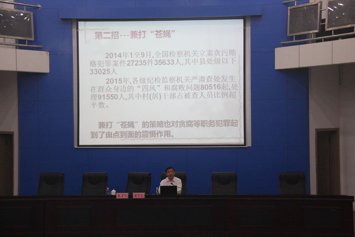 柴学友结合自己多年的研究成果和工作实践,通过大量案例和数据,对中国反腐倡廉进入历史新纪元、当前职务犯罪的形势与特点、职务犯罪的心理特征、职务犯罪的危害、如何预防职务犯罪五个方面的内容进行了深入的阐述和剖析,给与会同志上了一堂内容丰富、通俗易懂、教育深刻、形象生动的警示教育课,也是一次法律知识和预防职务犯罪实务的现场教学。他从理论与实践相结合的角度、从关爱每位干部政治生命的高度,列举了近年来有关职务犯罪的典型案例,给每一位同志敲响了警钟,充分体现了党的十八大提出的“反腐倡廉必须常抓不懈、拒腐防变必须警钟长鸣”的总体要求,贯穿着“关心您、保护您、帮助您”的预防理念,让参会干部受到了强烈的震撼和深刻的教育,达到了入心、入脑、冒汗的警醒效果。