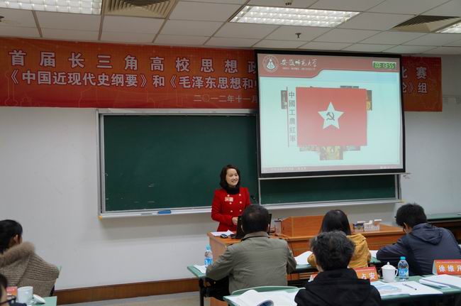 (图为佘君参加首届长三角高校思想政治理论课教师教学比赛决赛)