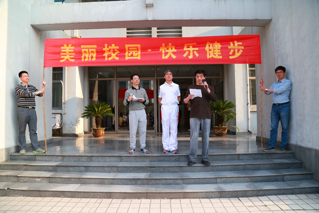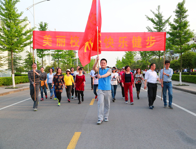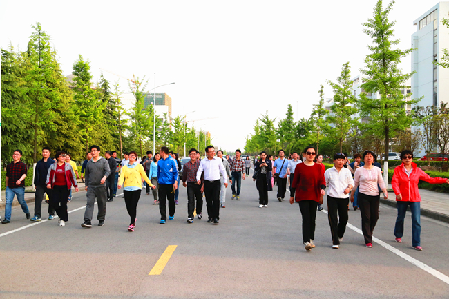 活动开始之前,机关工会主席姜长付宣读了本次机关健走的活动方案及注意事项,并安排校体操队队员为参加活动的教职工们进行了健走动作示范和热身训练。随着副校长朱家存的发号令起,近200名教职工以学校行政楼前广场为起点,开启了欢声笑语的环校绿色健走。一路上,大家精神抖擞、热情洋溢,兴致勃勃地健步走在环校大道上,呼吸着新鲜空气、欣赏着如画美景、畅谈着幸福师大。