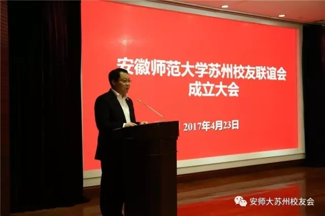 本网讯 (苏州校友会 05级中文 马健) 阳春时节,相会苏城。4月23日,安徽师范大学苏州校友联谊会成立大会在苏州南林饭店隆重召开,在苏各界110余位校友代表相聚一堂,同忆师大事,共话母校情。