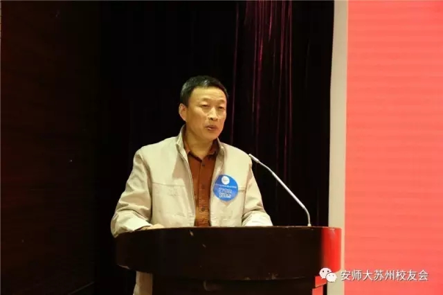 新当选的会长苏州大学社会学院教授、博士生导师、79级历史系余同元代表苏州校友会发言,表示要凝聚好校友,为母校守住根据地,积极为苏州校友们的共同进步搭建平台。