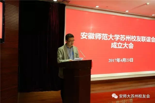 上海校友会何小刚先生上台致辞,恭贺苏州校友会的成立。