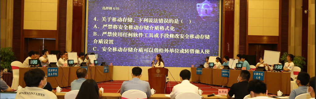 为进一步增强大学生网络安全意识,提升校园网络安全防护水平,全面营造共筑网络安全防线的浓厚氛围,安徽师范大学2022年9月18日上午在中央城大酒店主办了主题为“争做校园好网民,青春献礼二十大”的“华三杯”芜湖高校大学生网络安全知识挑战赛。