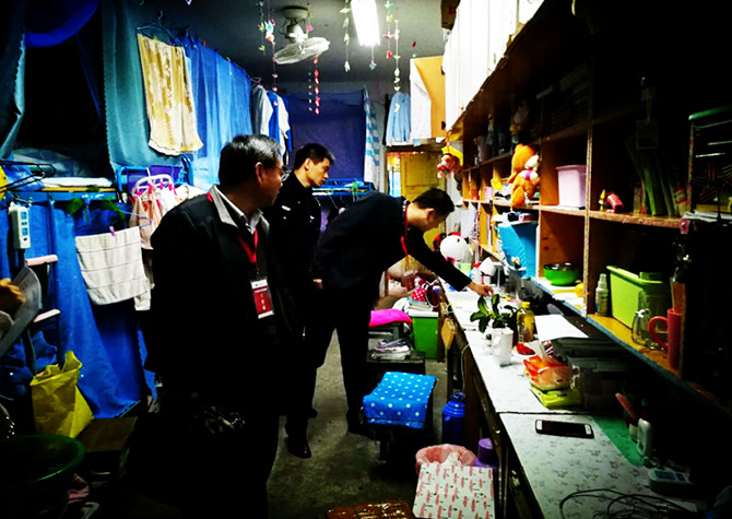 在小食代美食广场,检查组查看了安全疏散通道、消防器材、消防报警系统运行状况等;在学生食堂,查看了就餐环境、后堂设备、原料仓库等;在110接报警指挥中心,查看了视频监控系统运行、安保值班制度落实情况等;在学生宿舍,检查组关切地询问同学们生活和学习情况,叮嘱同学们注意人身和财产安全,不要使用违规电器,进出宿舍关好门窗,提高安全防范意识;在徽商城教职工宿舍,查看了楼宇消防器材配备、楼道消防通道通畅情况等,切实做到安全检查“不留盲区、不留死角”。