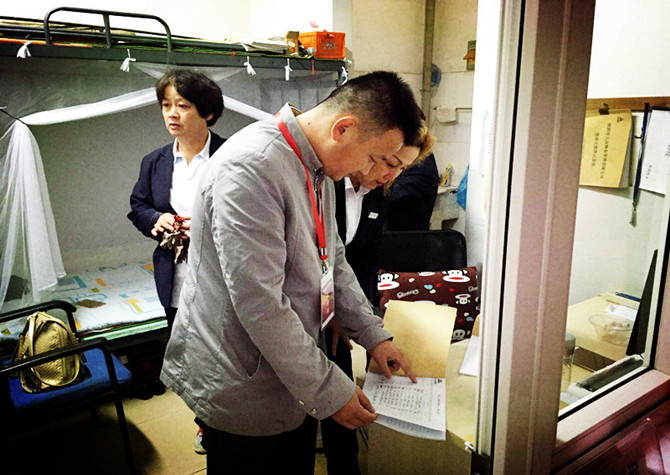 本网讯(保卫处 冯涛) 10月16日,在校党委副书记、校长、校安全生产委员会主任张庆亮带领下,由保卫处、学生处、研究生院、后勤管理处主要负责同志担任组长,全校共分为6个检查组,分别对赭山、花津校区进行安全生产现场大检查。检查范围包括学生宿舍、消防重点部位、人群密集场所、特种设备、实验室、餐饮场所,重点对安全设施(器材)配备、特种设备运行、安全制度制定落实、学生安全教育与管理等情况进行检查。