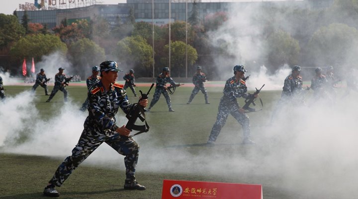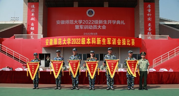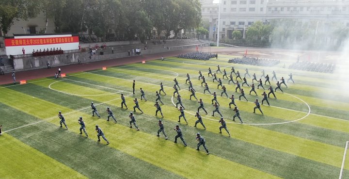 据悉,学校2022年军训工作是近8000名本科新生入学第一门课程,军训工作组严格按照常态化疫情防控要求,坚持安全第一、保证质量,各部门、各学院协调联动做好后勤保障,全体新生刻苦训练,各连队指导员全程跟训,全体官兵坚持科学施训,确保了军训工作的圆满成功。为了实现高质量施训,在武警芜湖支队支持承训的基础上,学校遴选了65名优秀退役大学生士兵担任助训教官;为不断提升国防教育育人成效,校党委人武部从花津校区各学院招募了330名新生组建了我校军事训练中的第一支旅直属特战营,训练单项军事技能,组织34位弋矶山医院医护专家为全体新生开展了急救知识现场示范教学和战场医疗救护教学;此外,今年军训安排有军训日记、教唱校歌、体能训练等内容,学校官微、学生工作微信公众号等推送13期军训图文报道,遴选推出了优秀军训日记214篇。全体新同学通过此次军训砥砺了的报国信念,磨炼了的意志品质,增强了吃苦奋斗精神,以优异成绩献礼新中国成立73周年,以昂扬青春喜迎党的二十大胜利召开。